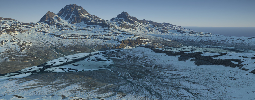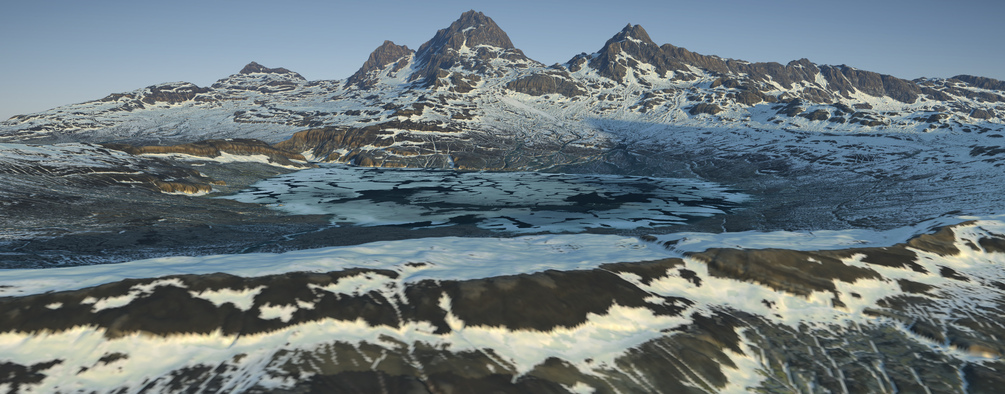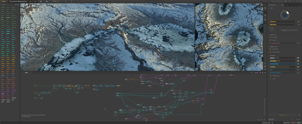Knowing more and more of Gaea's possibilities you could probably totally avoid that node and create a unique ice cover and melting scheme from other combinations. But knowing how it works and how to harmonize it with the water system and the snow is good knowledge.